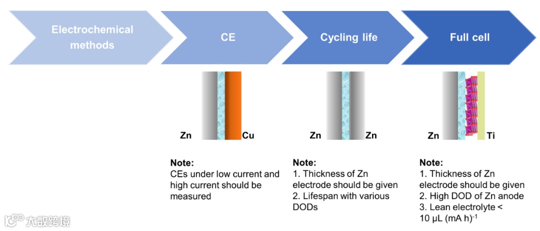 由于锌电极/电解质界面相的研究还处于起步阶段,电化学方法评价每种策略有效性的详细标准还不成熟。 电极/电解质界面调控的目标都是为了实现金属锌在水电池中的实际应用。