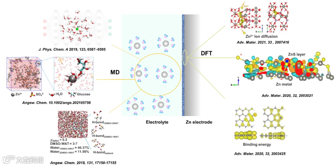 除了上述表征手段,模拟计算被广泛地用于评估电极,电解液调控策略的有效性。 基于不同的策略,分子动力学(MD)模拟和密度泛函理论(DFT)计算被广泛用于进一步在分子水平上验证其工作机制。