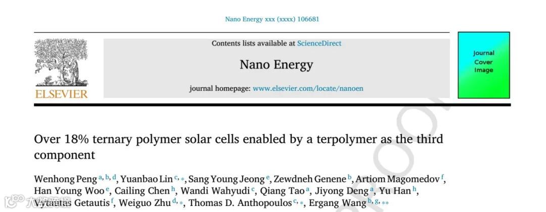相关研究成果以“Over 18% Ternary Polymer Solar Cells Enabled By A Terpolymer as The Third Component”为题在国际期刊《Nano Energy》(影响因子17.881)上发表。