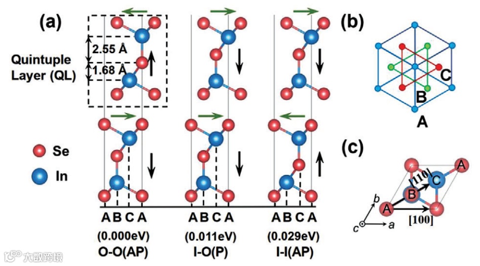首先,在我们的工作中,研究对象是具有铁电极化特性的两个五层原子层(2QL)厚度的In2Se3二维材料公度同质结,如图3所示。研究的是上层的QL-In2Se3在外压力下相对于下层QL-In2Se3沿着高对称性方向相对滑动时的势能面的变化,从而计算出滑动时所所需要客服摩檫力所做的功,并计算出相对应的摩檫力及其变化。因此,在整个滑动过程中,同质结是一种公度接触。