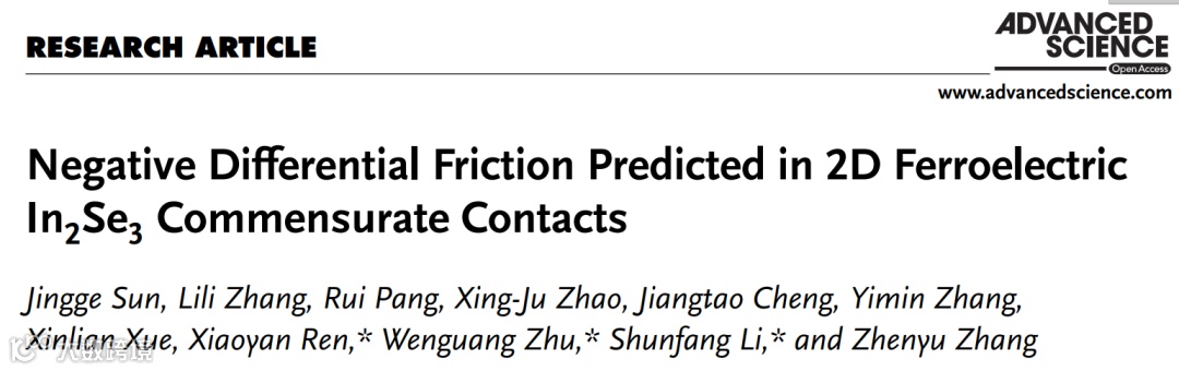 任晓燕副教授、朱文光教授、李顺方教授, AS赏析:二维铁电材料In2Se3 公度同质接触界面负微分摩擦系数的第一性原理计算研究 科学材料站