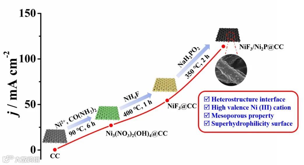 图1:NiF3/Ni2P@CC的制备及其UOR性能图