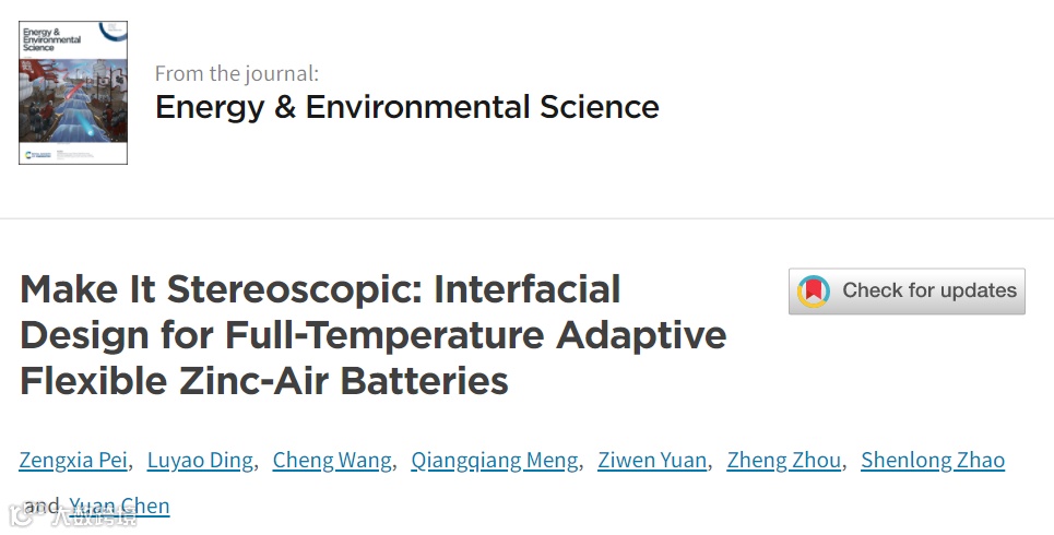 基于此,悉尼大学的裴增夏博士,赵慎龙博士,和陈元教授在国际顶级期刊Energy & Environmental Science上发表题为“Make It Stereoscopic: Interfacial Design for Full-Temperature Adaptive Flexible Zinc-Air Batteries”的研究文章。