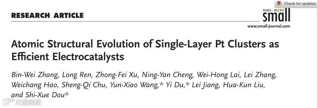 基于此,来自澳大利亚卧龙岗大学的窦世学院士团队在国际知名期刊Small上发表题为“Atomic Structural Evolution of Single-Layer Pt Clusters as Efficient Electrocatalysts”的文章。