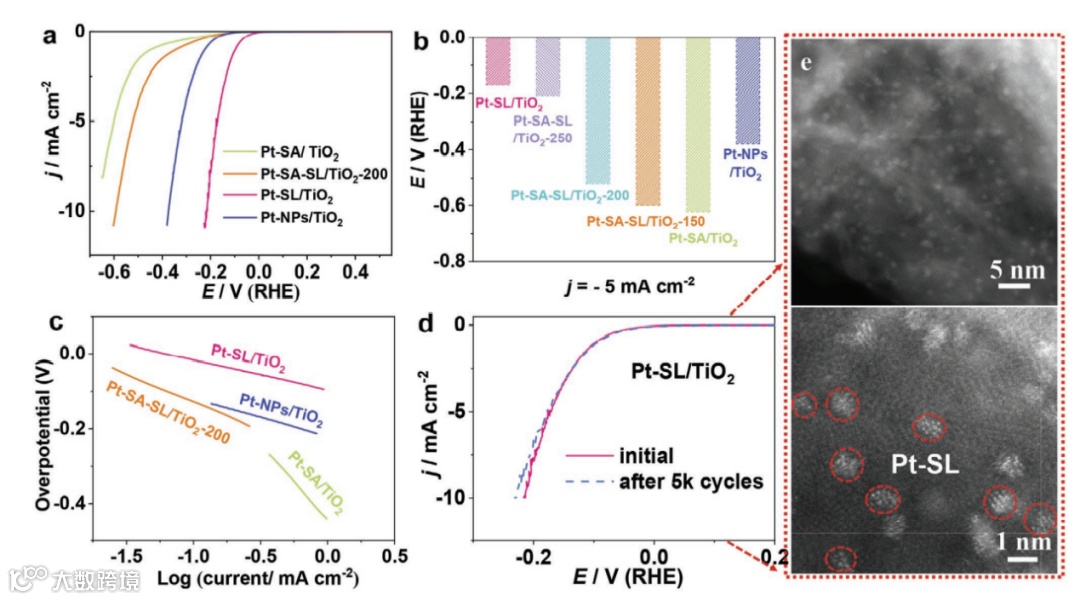 图2. 单原子层催化剂优异的HER性能。