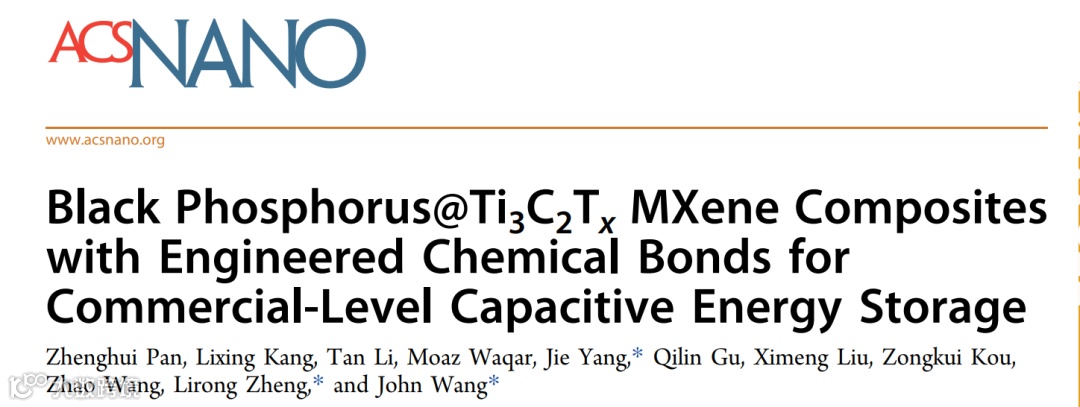 基于此,来自新加坡国立大学的John Wang教授,在国际知名期刊ACS Nano上发表题为“Black Phosphorus@Ti3C2Tx MXene Composites with Engineered Chemical Bonds for Commercial-Level Capacitive Energy Storage”的文章。