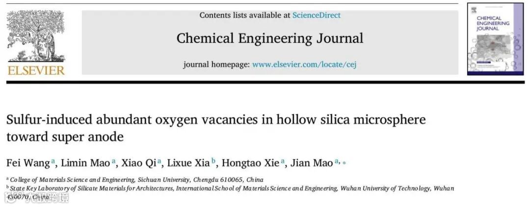 基于此,来自四川大学的毛健教授团队在国际知名期刊Chemical Engineering Journal上发表了题为“Sulfur-induced abundant oxygen vacancies in hollow silica microsphere toward super anode”的文章。