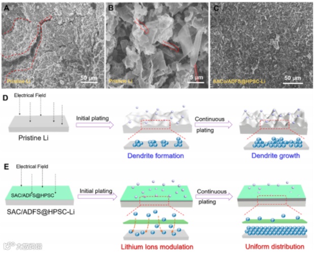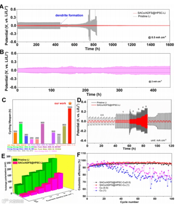 图3 SACo/ADFS@HPSC调控层提升锂金属电极的电化学稳定性和寿命