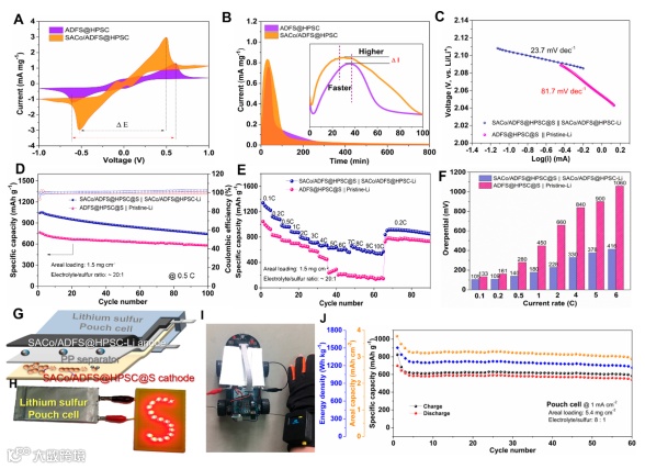 图5 以SACo/ADFS@HPSC调控的锂金属作负极的锂硫全电池电化学性能测试