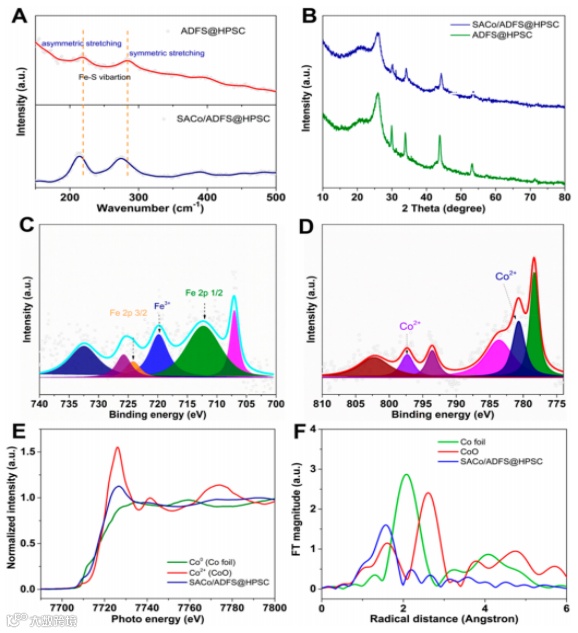 图2 SACo/ADFS@HPSC复合体系中活性单原子的谱学特征