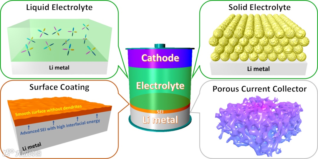 导读:该文章从集流体结构和电解液设计方面出发,总结了四种用于高性能锂金属负极的有效策略,包括表面包覆、多孔集流体、液体电解液和固体电解液设计。