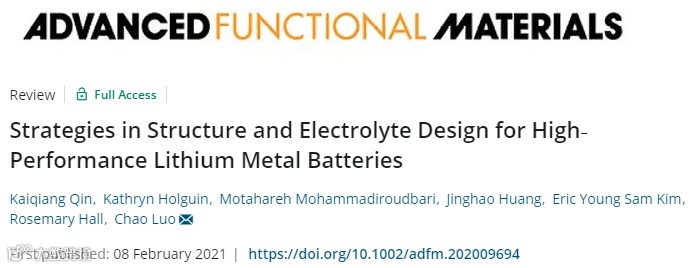 骆超教授AFM综述: 用于高性能锂金属电池的电极结构及电解液设计策略 科学材料站