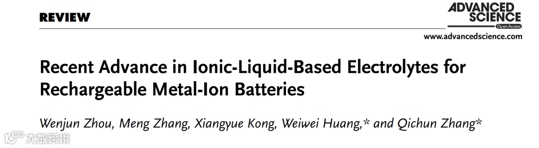 黄苇苇教授、张其春教授,AS最新综述:离子液体电解质在金属离子可充电电池中的最新进展 科学材料站