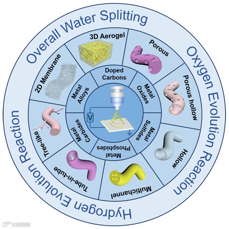 导读:该综述文章分别从析氢反应(HER)、析氧反应(OER)及全水解三个方面,系统、全面地总结了静电纺纳米纤维电催化剂在组成调控、结构设计等方面的最新研究进展