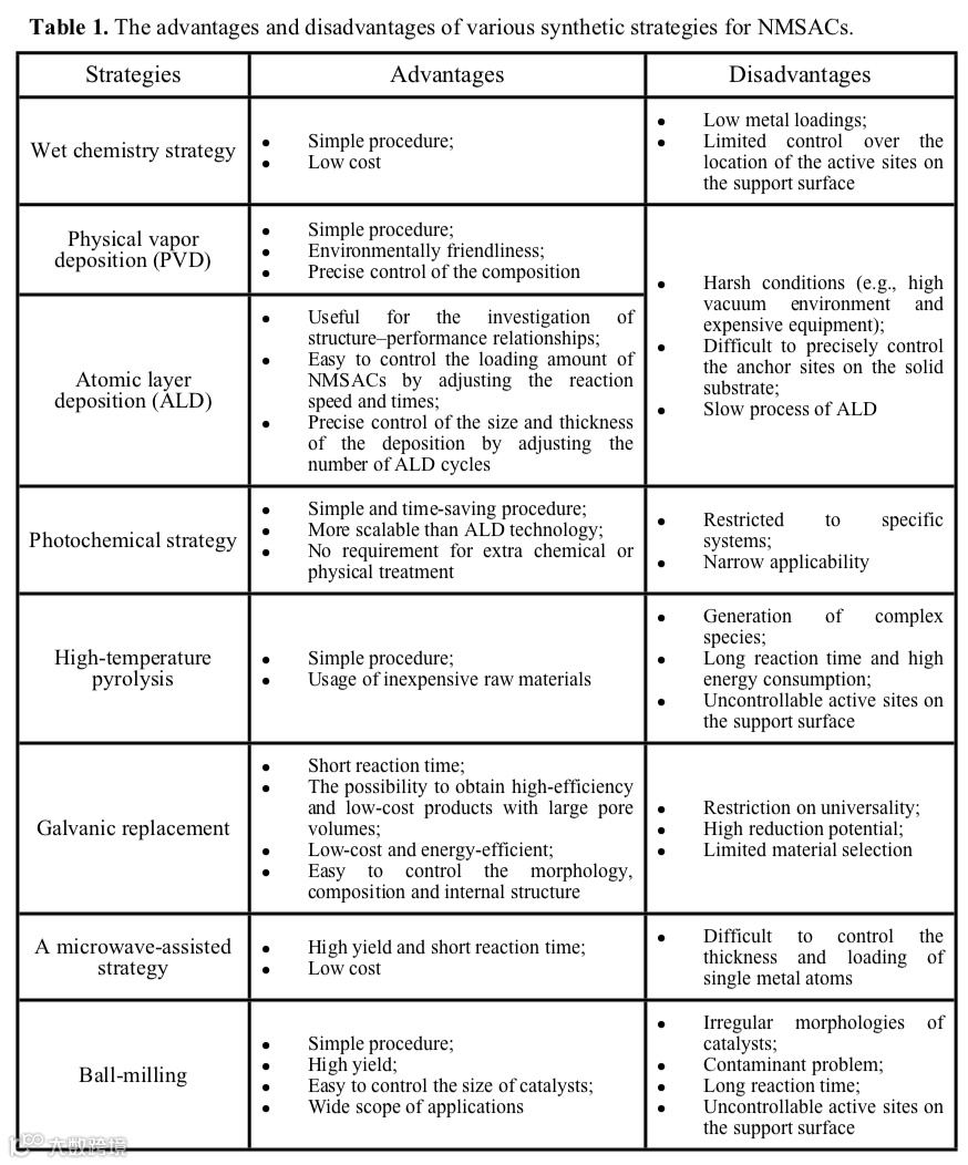 要点一:作者介绍了目前所报道的各种制备NMSACs的有效策略,包括湿化学,物理化学沉积,光化学,电偶置换和其它策略,同时对各种方法的优缺点进行了总结和讨论。