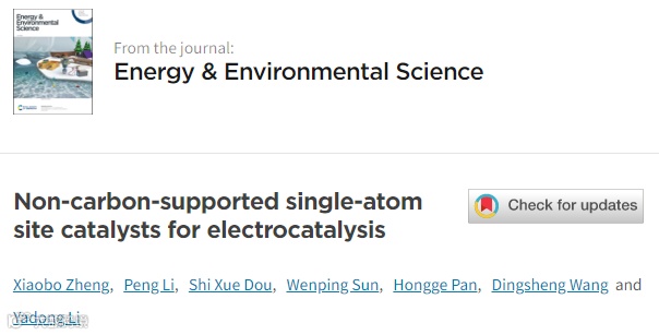基于此,清华大学王定胜,浙江大学孙文平教授Energy & Environmental Science (影响因子:30.289)上发表题为“Non-carbon-supported single-atom site catalysts for electrocatalysis”的综述文章。