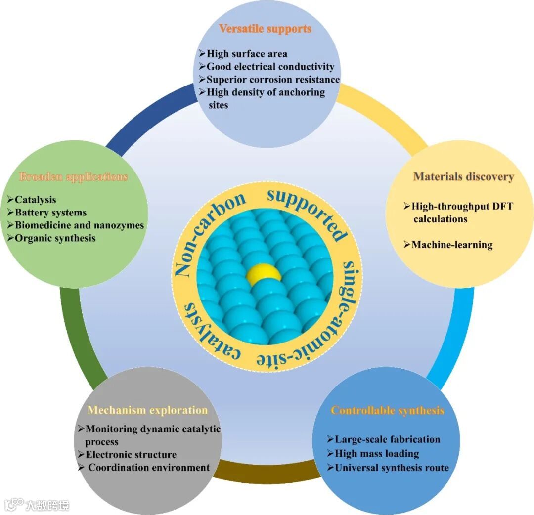 此外,作者也指出了非碳基单原子催化剂的潜在发展方向,如普适性构筑,大规模可控合成、先进原位表征技术、催化机制揭示以及催化剂筛选等方面。