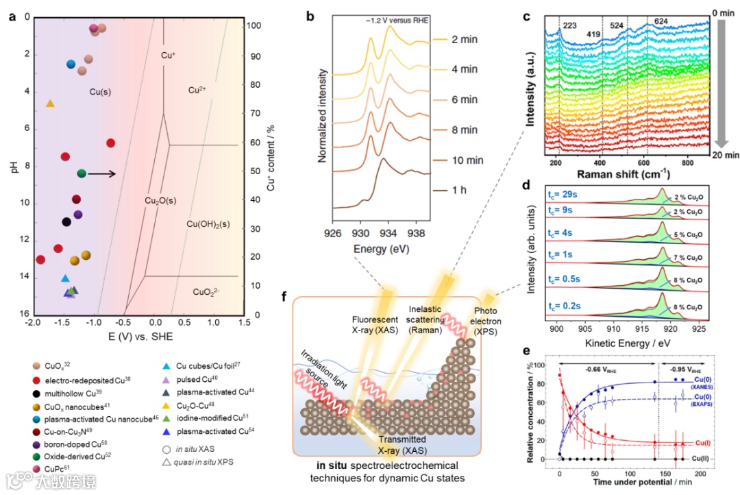 图1 基于in situ/operando表征的CO2RR过程中表面铜化学价态的动态演变
