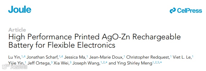 孟颖教授&Joseph Wang教授 Joule文章 :柔性电子产品驱动新方案 - 高性能全印刷的可充电AgO-Zn电池