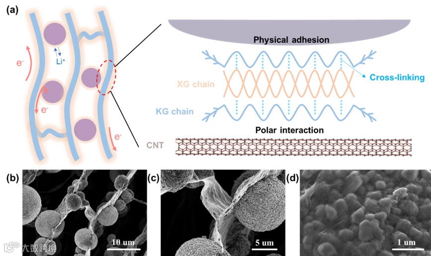 图1. 厚电极的结构设计以及粘接剂分子间的微观相互作用。