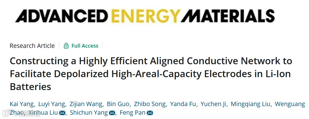 基于此,来自北京大学新材料学院的潘锋教授北京航空航天大学交通科学与工程学院的杨世春教授、刘新华助理教授合作,在国际知名期刊Advanced Energy Materials上发表题为“Constructing a Highly Efficient Aligned Conductive Network to Facilitate Depolarized High‐Areal‐Capacity Electrodes in Li‐Ion Batteries”的实验性文章。