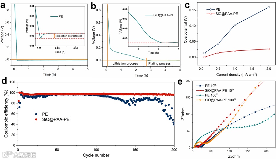 要点三:SiO@PAA亲锂涂层降低成核过电势,提高库伦效率