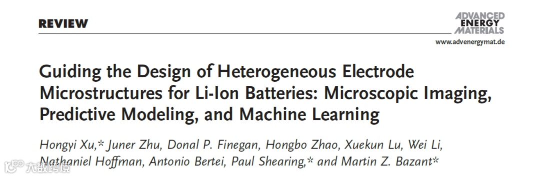 【顶刊综述】徐弘毅,朱俊儿等AEM综述:锂电池电极非均质微观结构设计:显微成像,预测建模, 以及机器学习