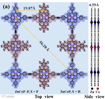 在该共轭聚合物(ZnCoP CP和ZnCoP-F CP)中,水分子在钴卟啉核的吸附能比锌卟啉核更低,且形成的Co-O键比Zn-O键长更短,说明水分子能更牢固地吸附在钴卟啉中心,进行水分解反应。