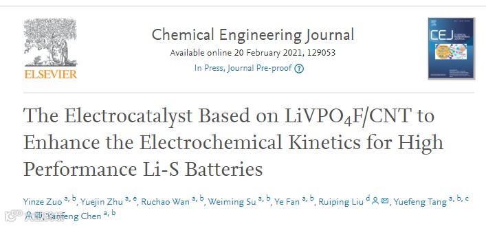 The Electrocatalyst Based on LiVPO4F/CNT to Enhance the Electrochemical Kinetics for High Performance Li-S Batteries, Chemical Engineering Journal (2021)