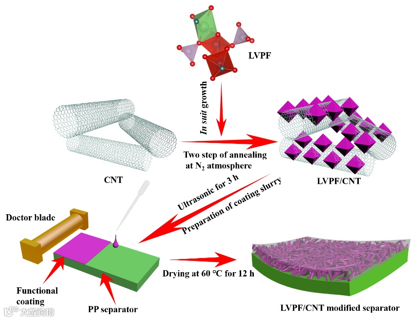 低成本、高效率的LiVPO4F/CNT电化学催化剂用于锂硫电池隔膜改性