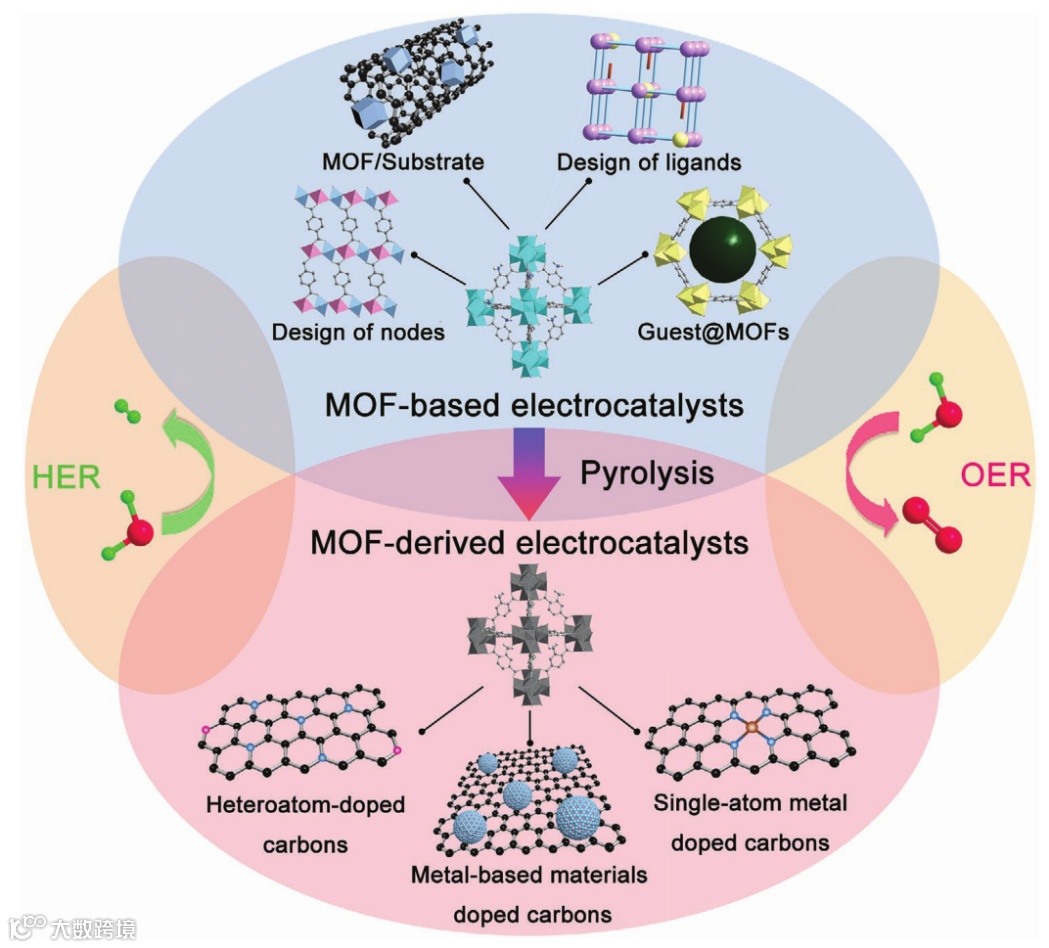 在这种情况下,将电能转化为可储存氢能的电化学水分解是缓解能源短缺和减少温室气体排放的可行而有效的解决方案。金属有机骨架材料(MOF)是由有机配体和金属离子或金属团簇组成的一类新型具有较高的结晶度和长程有序度的多孔材料。由于表面积大、化学成分可调、孔隙结构可调、拓扑结构多样等的特征,大量的MOF及MOF衍生材料被用于电解水。
