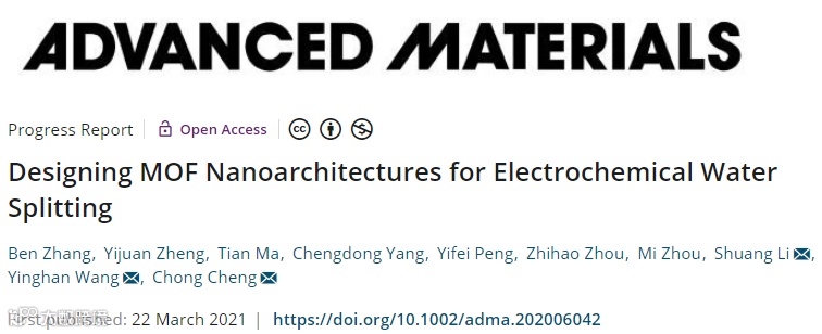 李爽,汪映寒,程冲教授 AM:设计用于电化学水分解的金属有机框架材料