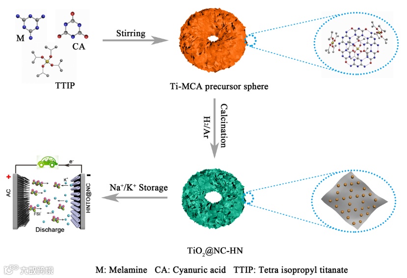 图1. TiO2/NC-HN的合成以及应用示意图