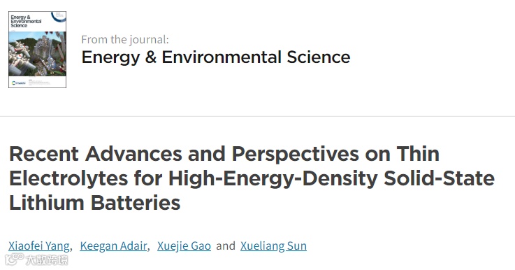 近日,来自西安大略大学的孙学良教授课题组在国际知名期刊Energy & Environmental Science(影响因子:30.289)上发表题为“Recent Advances and Perspectives on Thin Electrolytes for High-Energy-Density Solid-State Lithium Batteries”的综述文章。