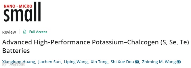 窦世学教授&王志明教授 Small综述: 先进的高性能钾硫族(硫,硒, 碲)电池