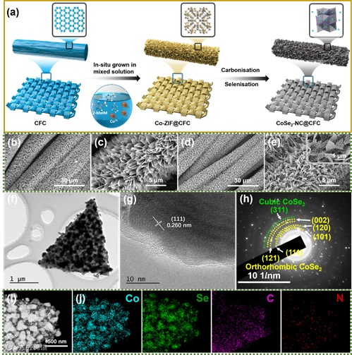 导读:该研究在碳布表面设计和制备了亲锂CoSe2纳米颗粒镶嵌的氮掺杂碳纳米片阵列(CoSe2-NC@CFC)。