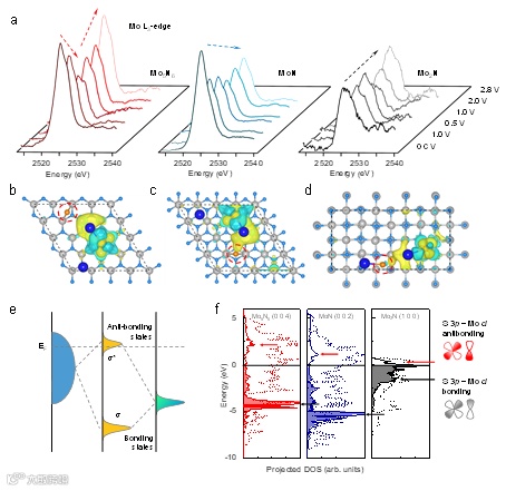 图4. 反应过渡态对应的氮化钼中Mo的电子结构