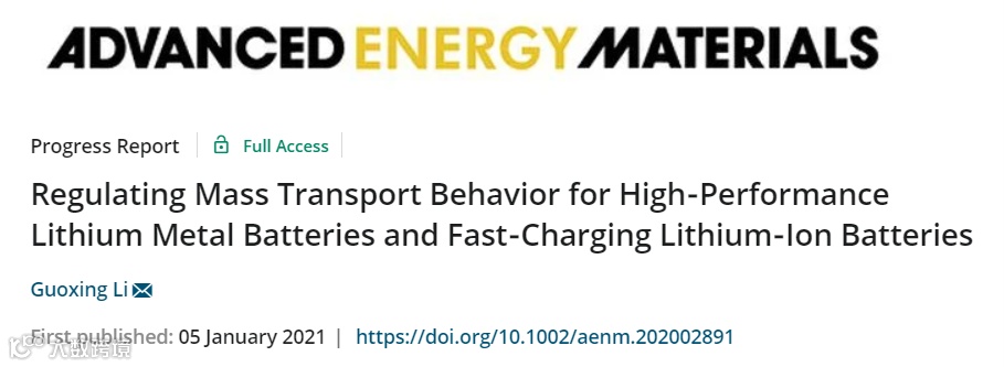 近日,来自山东大学的李国兴教授在国际知名期刊Advanced Energy Materials上发表题为“Regulating Mass Transport Behavior for High-Performance Lithium Metal Batteries and Fast-Charging Lithium-Ion Batteries”的综述文章。