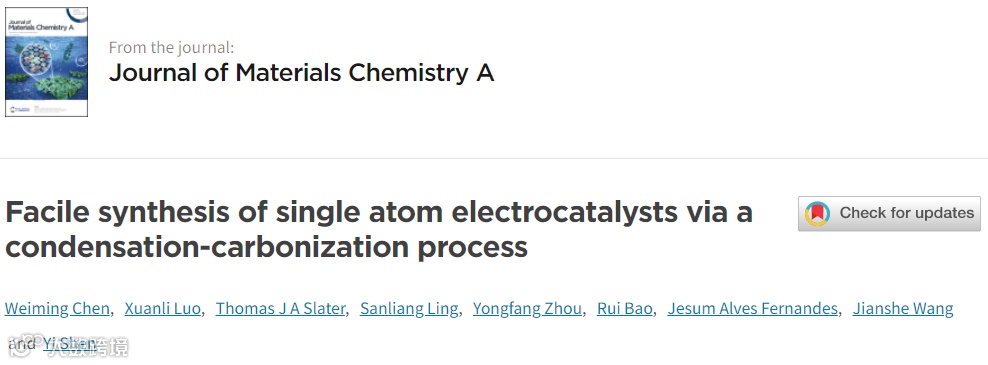 近日,华南理工大学的申益教授在国际期刊Journal of Materials Chemistry A (影响因子:11.301) 上发表题为“Facile synthesis of single atom electrocatalysts via a condensation-carbonization process”的研究工作。