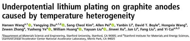 Underpotential lithium plating on graphite anodes caused by temperature heterogeneity. (PNAS.,2020,DOI: 10.1073/pnas.2009221117)