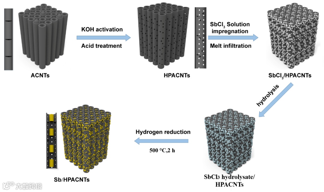 图 1 Sb/HPACNTs的合成示意图