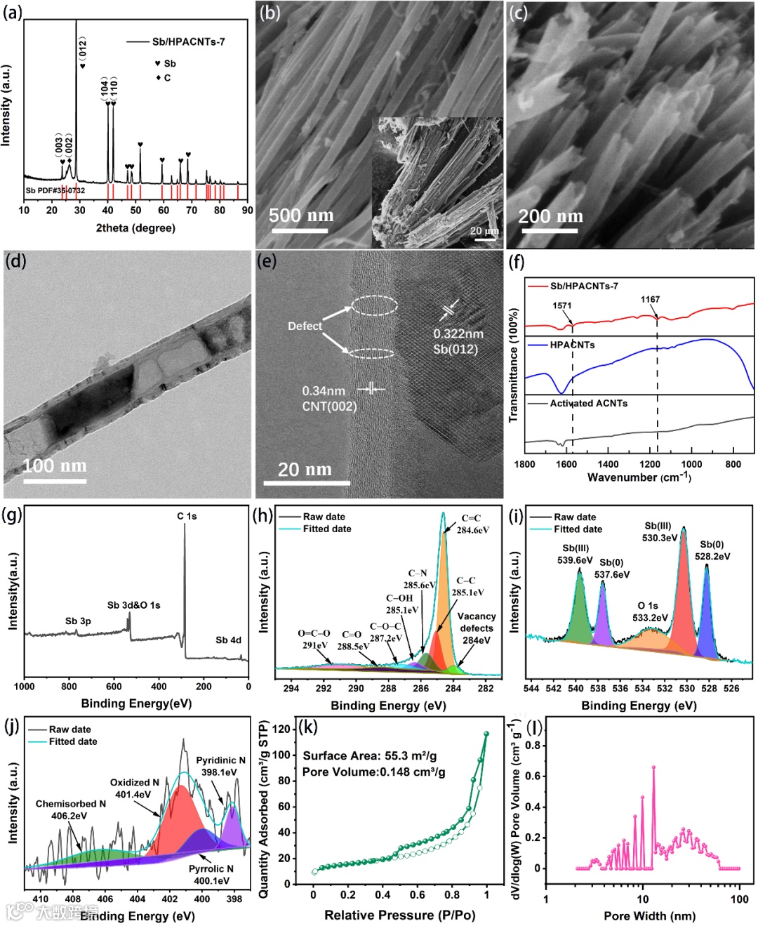 图2  Sb/HPACNTs的结构特性表征