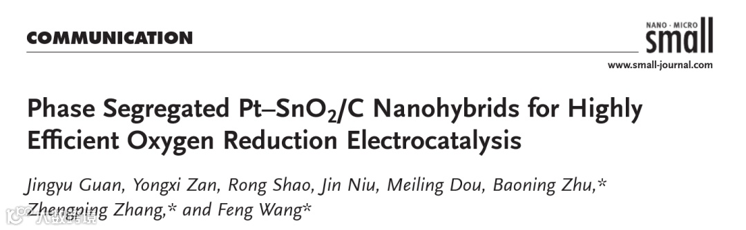近日,来自北京化工大学的王峰教授、张正平教授,在国际知名期刊Small上发表题为“Phase Segregated Pt–SnO2/C Nanohybrids for Highly Efficient Oxygen Reduction Electrocatalysis”的研究工作。