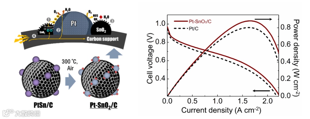 燃料电池中,由Pt纳米颗粒和第二金属氧化物组成的非均相纳米杂化材料可提高材料耐腐蚀性能并且防止了Pt颗粒的迁移。因此,作为电化学催化剂引起了广泛关注。