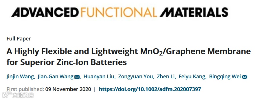 王建淦教授/Bingqing Wei教授AFM:用于优质锌离子电池的高柔性,轻质的MnO2 /石墨烯膜