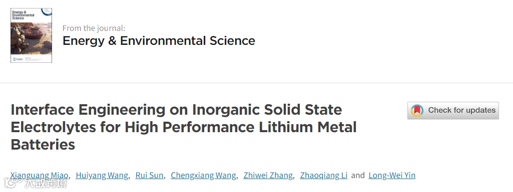 尹龙卫教授团队EES:高性能锂金属电池无机固态电解质的界面工程 科学材料站