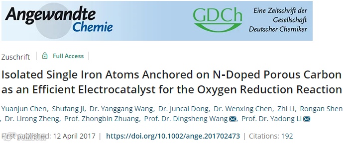 孤立的单铁原子锚定在N掺杂的多孔碳上作为氧还原反应的高效电催化剂