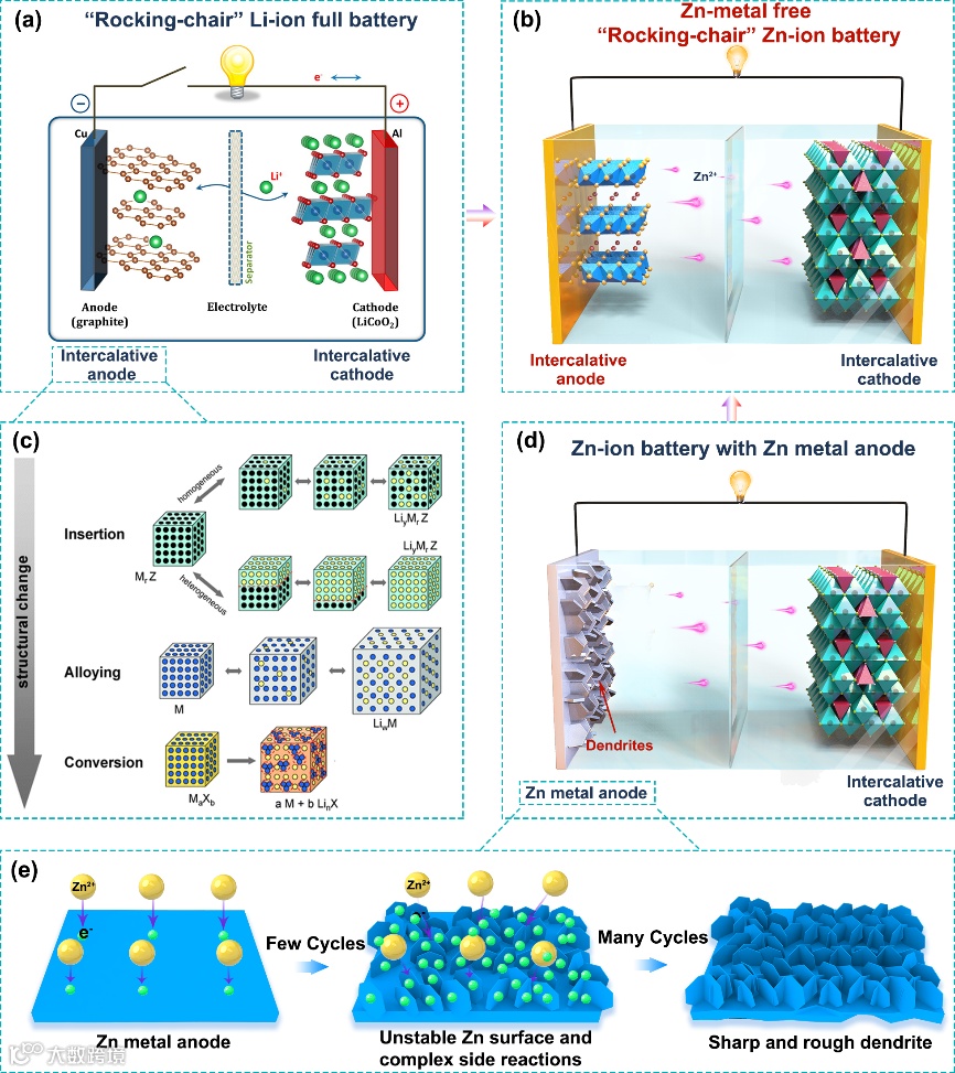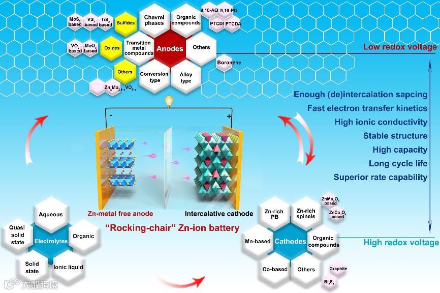 2) 理论研究与实验相结合,对锌的储存机理进行了较为系统和深入的研究。理论模拟计算可用于筛选和探索“摇椅”锌离子电池的潜在材料。