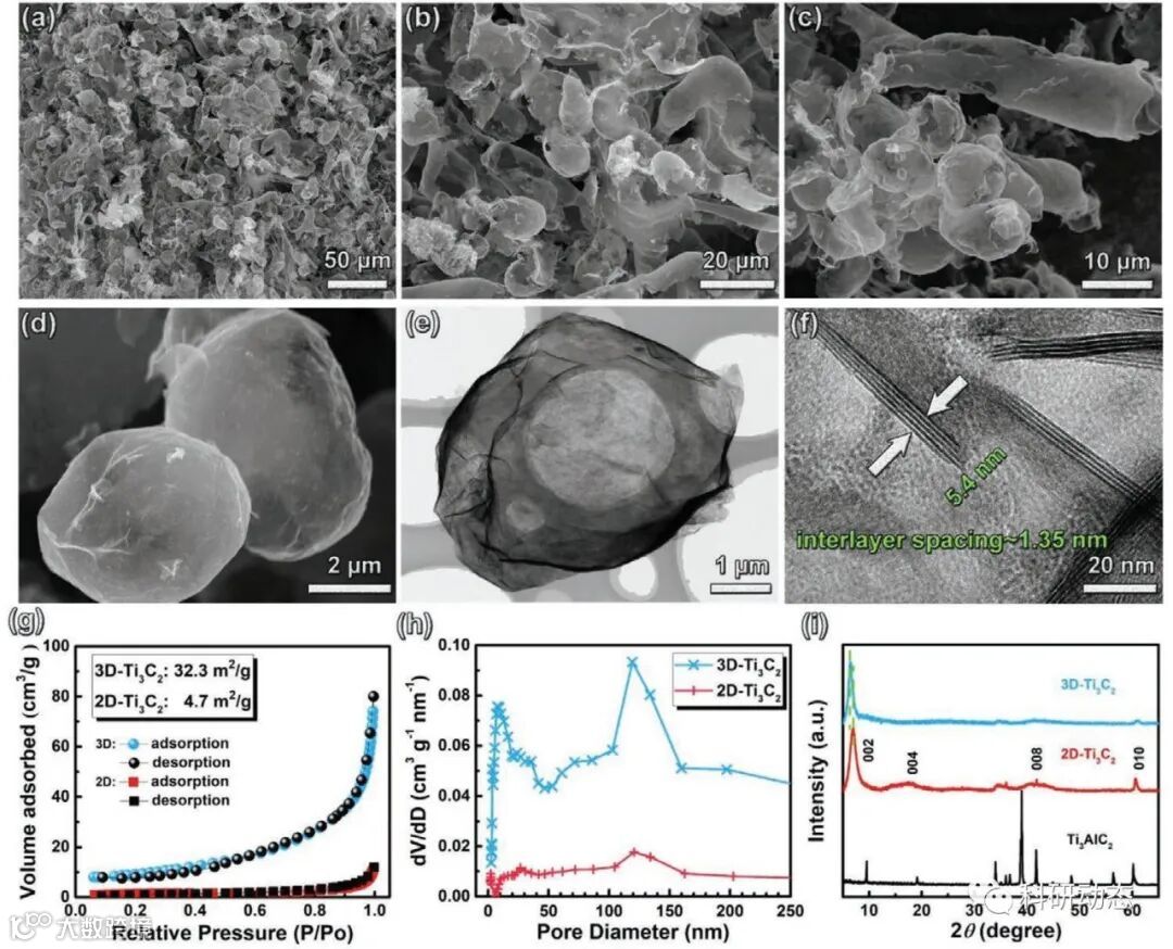 成功合成了性能无损的球/管状的3D-MXene,展现了明显的抗聚特性。