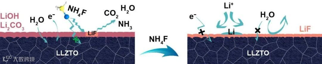 与去除方法不同的是,研究者在这里报告了一种新的表面化学方法,它能在小于180℃的中等温度下将污染物转化为氟化界面。改性后的界面对Li +表面扩散显示出高电子隧穿势垒和低能垒,因此可以在1.4mA cm−2的高临界电流密度下实现无枝晶的Li电镀/剥离。这种新化学方法为实现高比能固态锂金属电池提供了一种切实可行的解决方案。